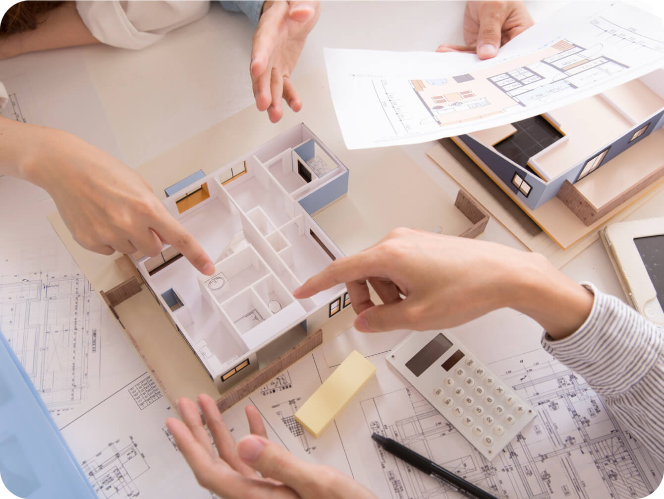 「相談できる」工務店お客様に寄り添いご満足いただける家づくりのためにも、担当制とし一貫対応を行っています。土地探しはもちろん、物件のデザインや素材、予算などご納得いただけるまで話し「打合せ記録」に残しています。細かいご要望にお応えするのはもちろん、お客様の個性にあった提案を心掛けています。